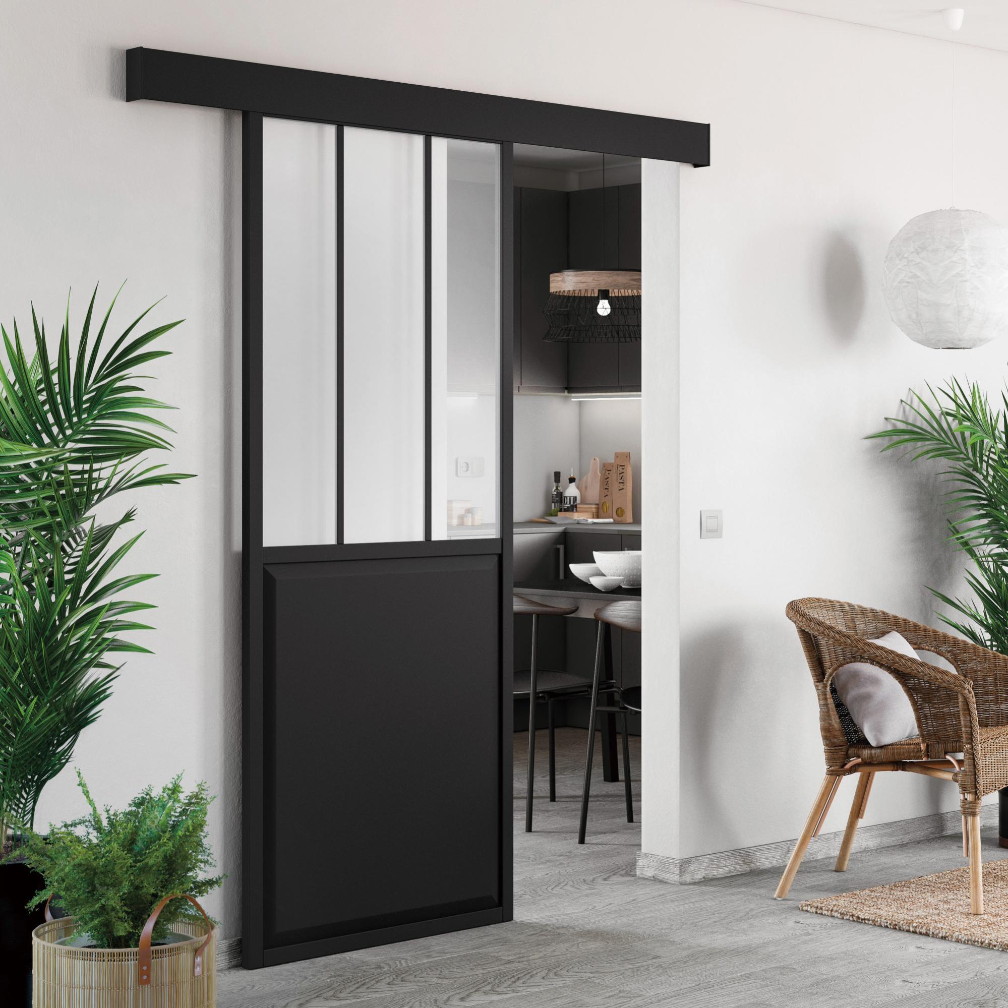 Porte Coulissante Atelier Xxl Noir Verre Clair H 220 X L 73 Cm Leroy Merlin