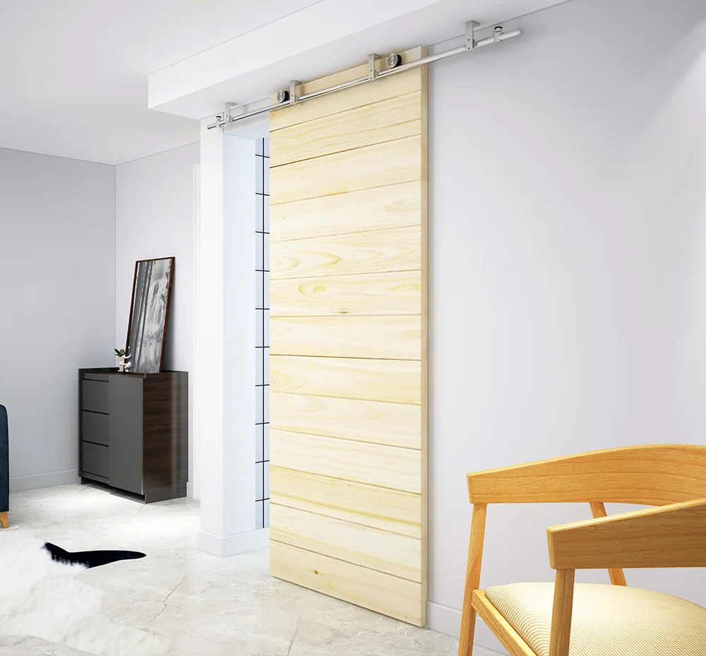 Simple à installer la porte coulissante peut se fixer au plafond ou sur le mur. Rail coulissant mur ou plafond pour porte largeur 123 cm maximum. Pour faciliter votre projet nous vous proposons des kits complets composés de tous les éléments nécessaires au montage de votre porte coulissante.