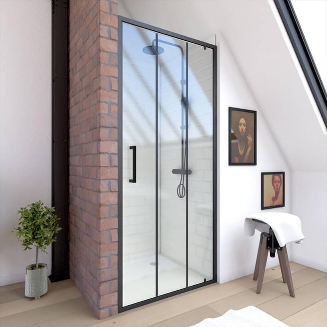 Porte De Douche Pivotant Transparent Noir 80 Cm Bridge Leroy Merlin
