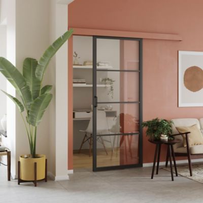 Livraison estimée entre 20 et 25 jours ouvrables. OPTIMUM - Kit porte coulissante rail bandeau Atelier - H204xL83xP4 cm - Noir verre transparent. De 159 porte vitrée atelier chez Castorama à 699 porte coulissante verrière pour système Harlem les enseignes de bricolage proposent différents modèles à monter soi-même.