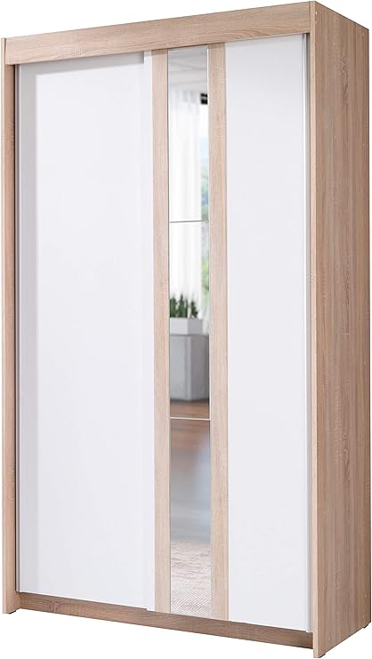 Furniturebyjdm Armoire 2 Portes Coulissantes Avec Miroir Belt Largeur 120cm Hauteur 216cm Profondeur 60cm Chene Sonoma Blanc Amazon Fr Cuisine Et Maison