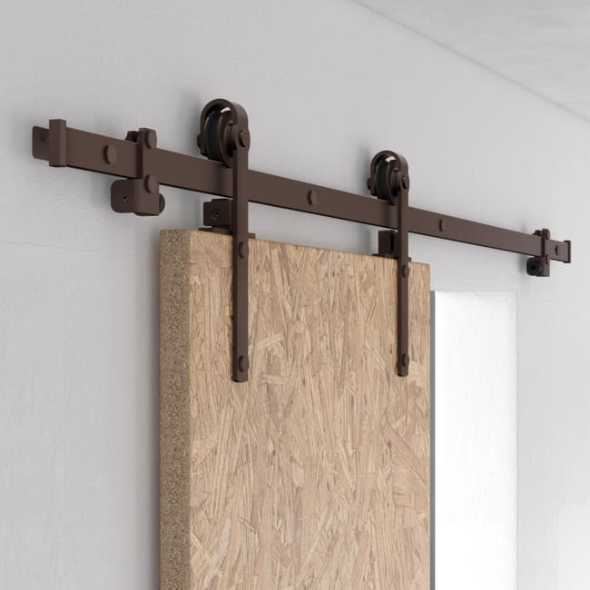 Systeme Pour Porte Coulissante En Bois Suspendue Noir Barn Emuca Bricozor